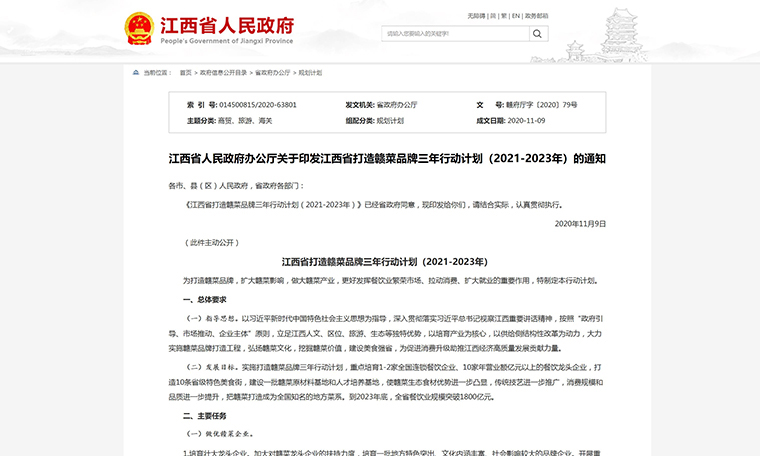 《江西省打造贛菜品牌三年行動計劃(2021~2023年)》(以下簡稱《行動計劃》)共提出包括做優(yōu)贛菜企業(yè)、提升贛菜品牌等主要任務(wù)。