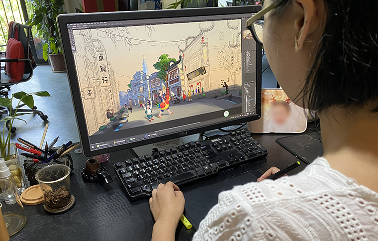 我們將故事中蘩樓在民國(guó)時(shí)期西關(guān)大街的場(chǎng)景、西關(guān)人提籠遛鳥的生活片段、在茶樓享受一盅兩件的飲茶習(xí)俗以手繪畫出來(lái),還原品牌歷史。這是