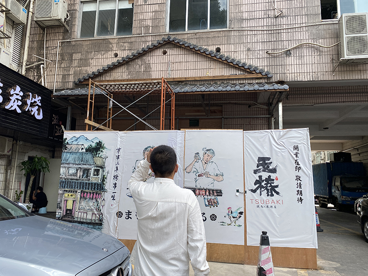 這是品牌設(shè)計(jì)和空間裝飾需要用自己的語(yǔ)言來(lái)講述的品牌故事。于是空間裝飾中用了日本江戶時(shí)代京都古建筑的元素,江戶時(shí)代的國(guó)花“椿花”,江戶時(shí)期京都地道燒鳥的選料與料理技法,把