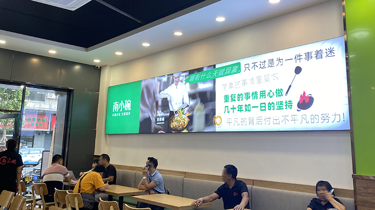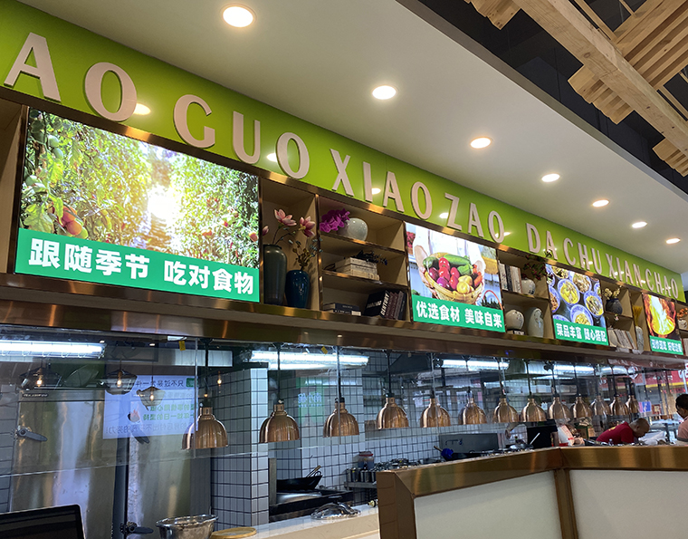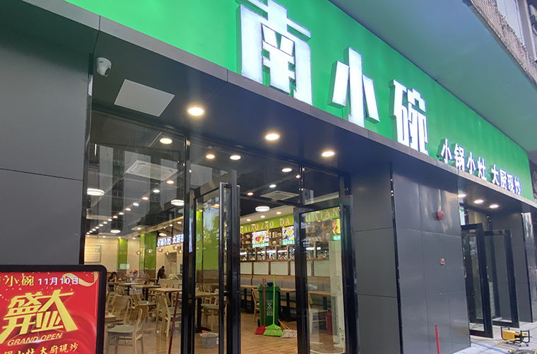 通過前期周密的市場考察和詳細的內(nèi)部調(diào)研,品深餐飲全案設(shè)計團隊為南小碗提取了“小鍋小灶,大廚現(xiàn)炒”的核心訴求,并以精心策劃設(shè)計的形象畫面在門店形象中不斷放大,重復(fù),讓消費者記憶深刻。南小碗觀瀾店位于富士康時光大道,面積230多平米,主要客群就是富士康的員工。南小碗觀瀾店裝飾一新,環(huán)境雅致,菜品新鮮,品種多樣,價格實惠,一經(jīng)開業(yè),生意火爆。