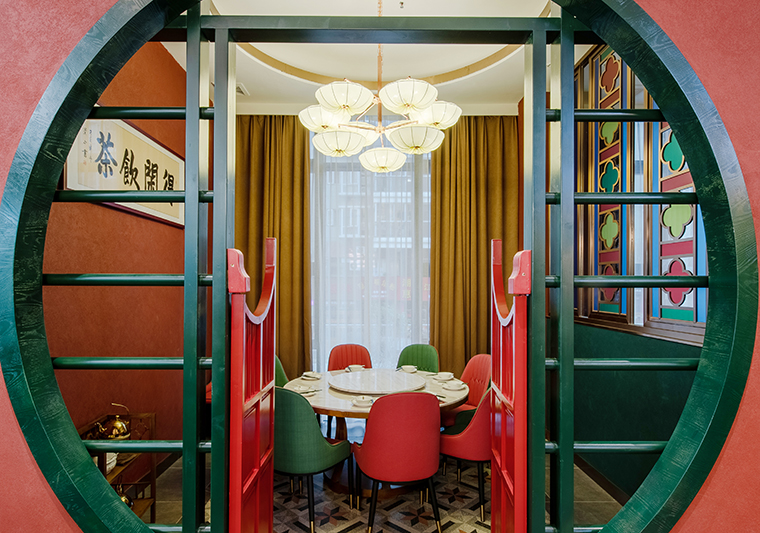 ,通過“紅配綠,大紅配大綠”這種大膽的色彩運(yùn)用,將“得閑飲茶”的廣式休閑飲食生活文化營(yíng)造的非常鮮明,時(shí)尚又極富歷史厚重感,深受廣大顧客的喜愛,為門店創(chuàng)造了持續(xù)穩(wěn)定的客流。