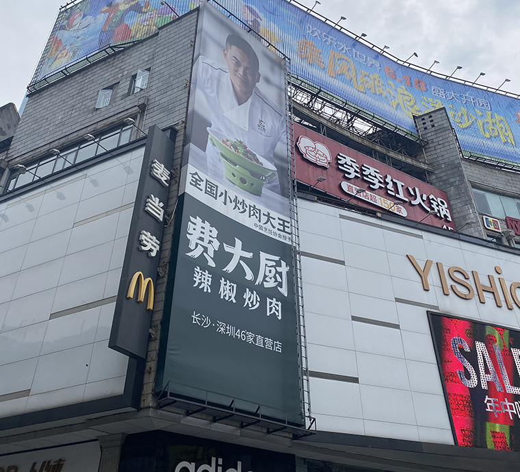 如:費(fèi)大廚辣椒炒肉:門店最顯著位置展示新鮮五花肉、湖南螺絲椒。菜單上最大版面突出宣傳這道菜。