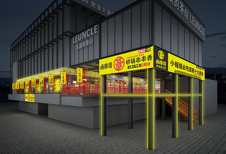 2、鹵串哥未來要走向全國,門店裝修成本控制在800元每平方之內,空間設計如何構建標準的門店裝修模型,讓品牌門店未來可以大規模復制擴張?