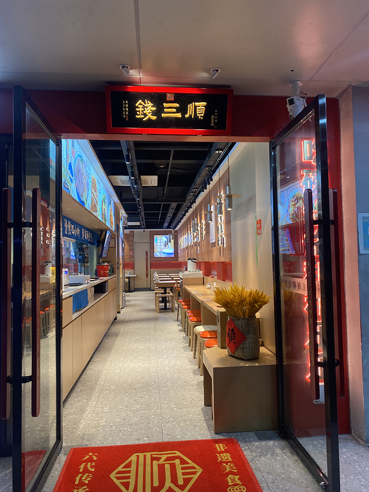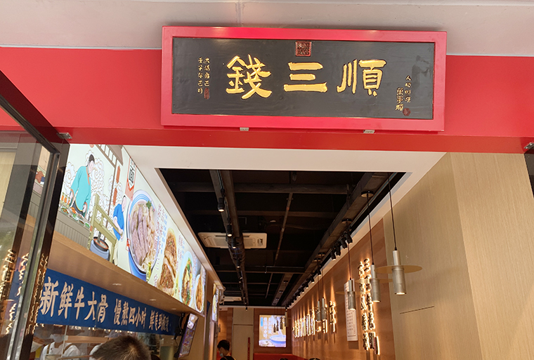 2、門店入門口上方懸掛錢三順匾額,匾額是中國文化中非常鮮明的符號。懸掛匾額讓人聯(lián)系歷史悠久,品牌是老字號,是傳承多年的。